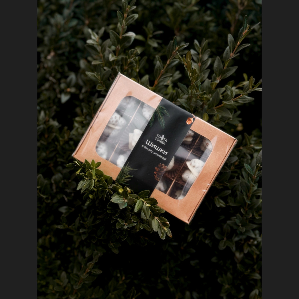 Склад: молоді соснові шишки, цукровий сироп, білий шоколад